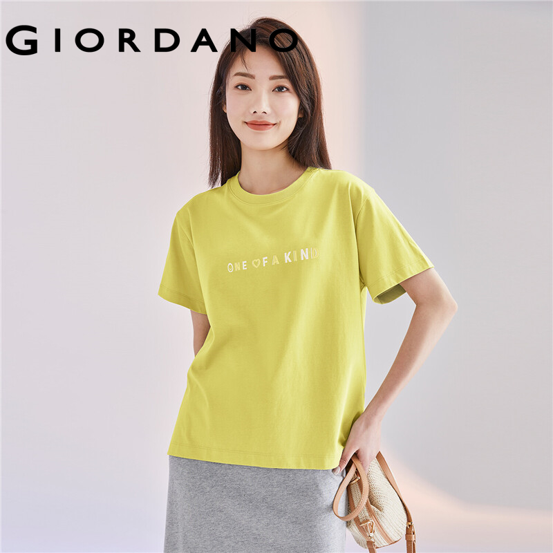 Giordano Women T-Shirts Printed Graphic Smooth T-Shirts Comfy Ribbed Crewneck Short Sleeves Casual Tops Free Shipping 05390220