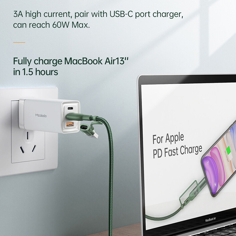 Mcdodo USB-A Type-C Charging Cable 4-in-1 PD/Lightning/Type-C/iPhone data cable fast charging for iphone 12 pro max iphone 11 pro Huawei Samsung Xiaomi 120cm