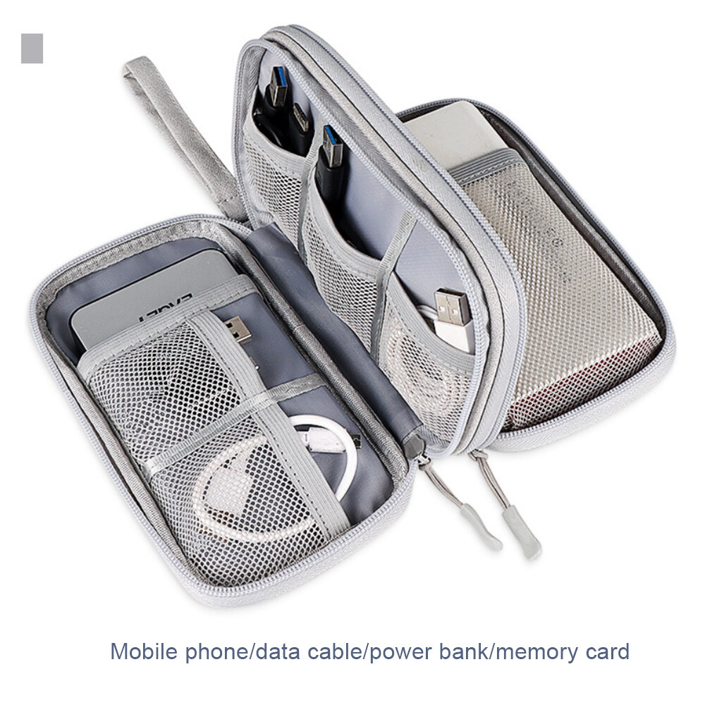 Lune Electronic Organizer Bag Power Bank Pouch 2 layers Large Capacity Storage Bag for Mobile power, Electronic Accessories USB Cable Charger Traveling Storage Bags