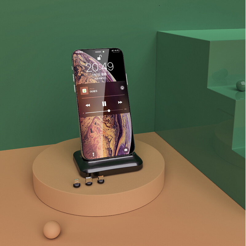 VAORLO 3in1 Magnetic Charger Dock Universal Phone Charge Micro usb Type C Lightning Stand Holder compatible with Apple iPhone 8 7 6 Plus X XR XS MAX For Vivo Oppo Huawei Desktop Charging Blacket