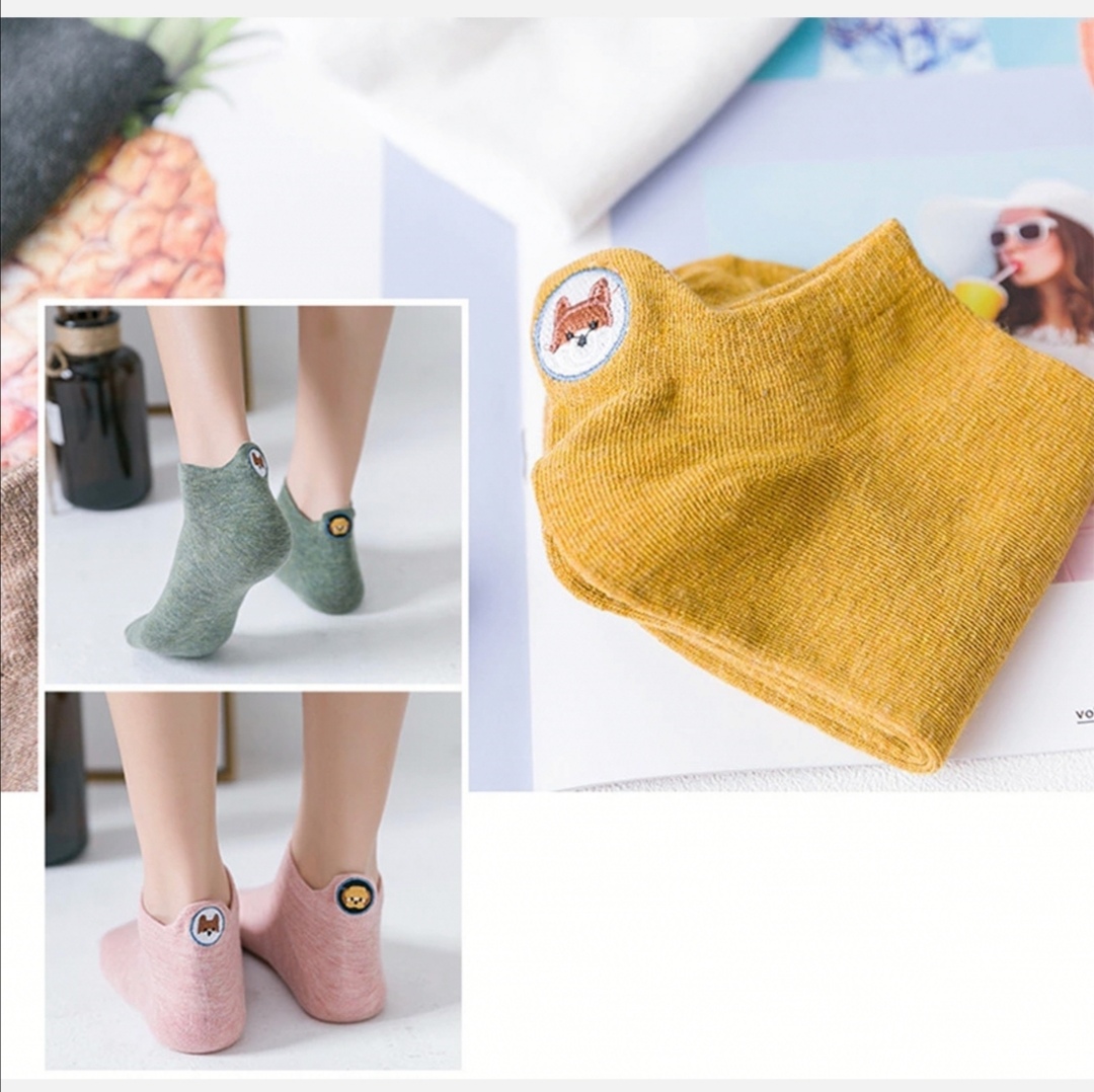 (SG Seller) Women Funny Ankle Socks Embroidered Animal Pug Cute Socks Kawaii Cartoon Candy Color Breathable Cotton Boat Socks