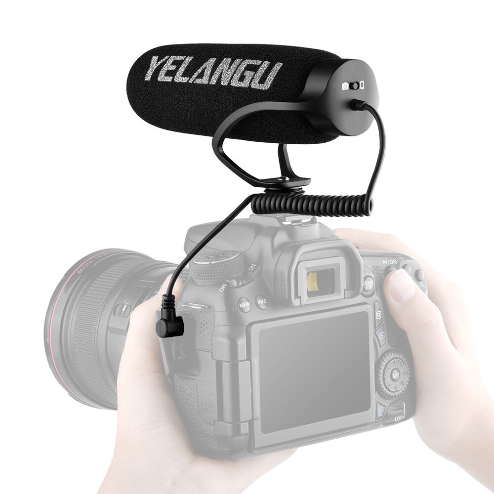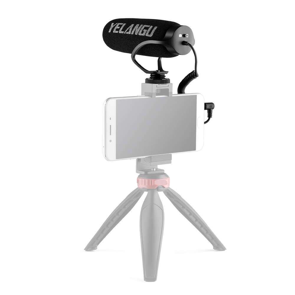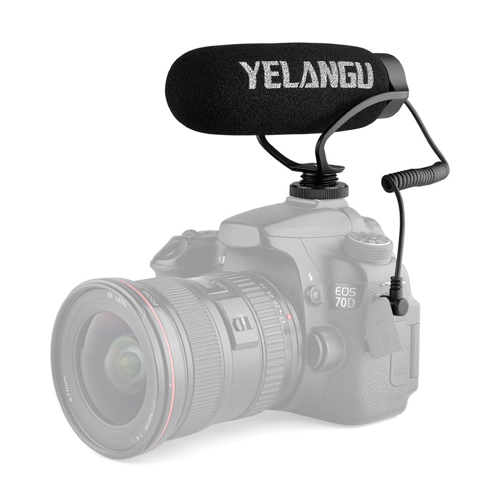 YELANGU MIC08 On-camera Condenser Microphone Noise-reduction Video Mic with Intergrated Shock Mount 3.5mm TRRS Cable Universal for Camera Smartphone Vlog Video Making Interview