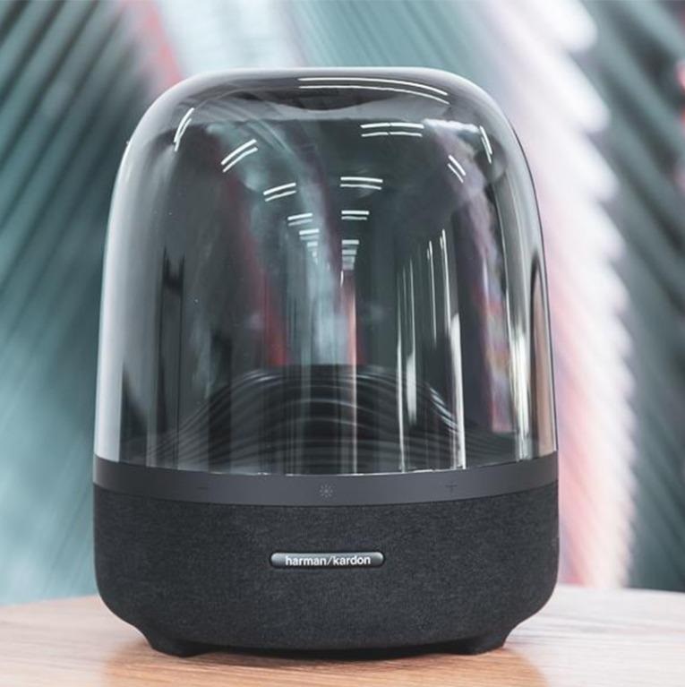 The art of beautiful sound. With a domed design, premium materials, and ambient light effects, the iconic Harman Kardon Aura Studio 3 makes a modern statement in your home.