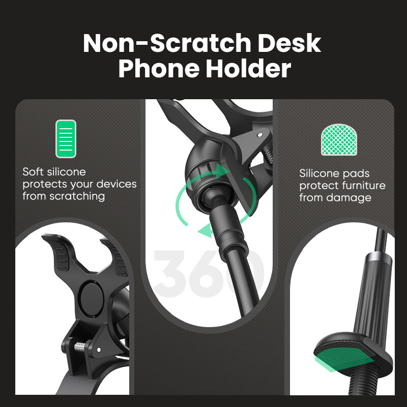 UGREEN Mobile Phone Holder for OPPO, VIVO, SAMSUNG, Realme, Huawei, Xiaomi, Redmi Arm Lazy Mobile Phone Goosneck Stand Holder for iPhone 8/X Flexible Bed Desk Table Clip Bracket for Smartphone