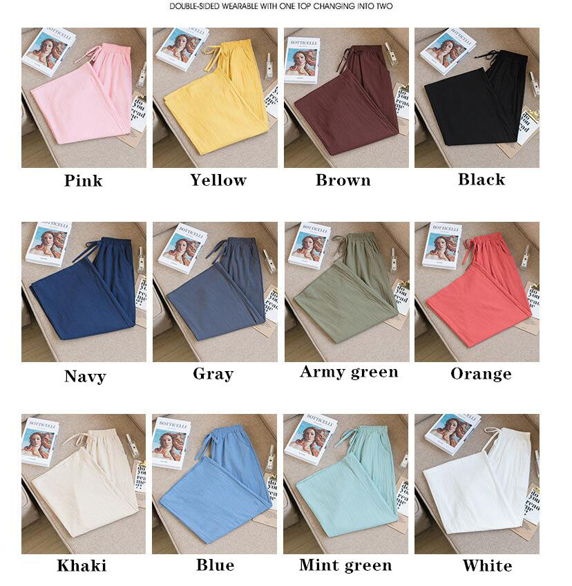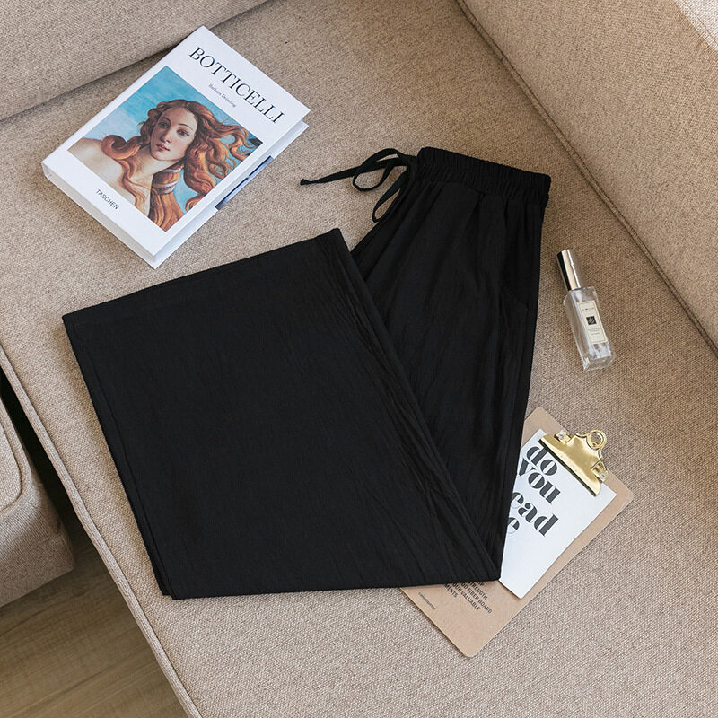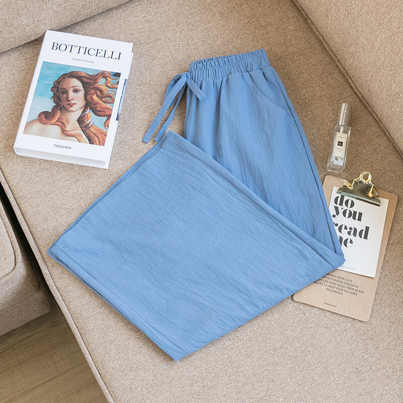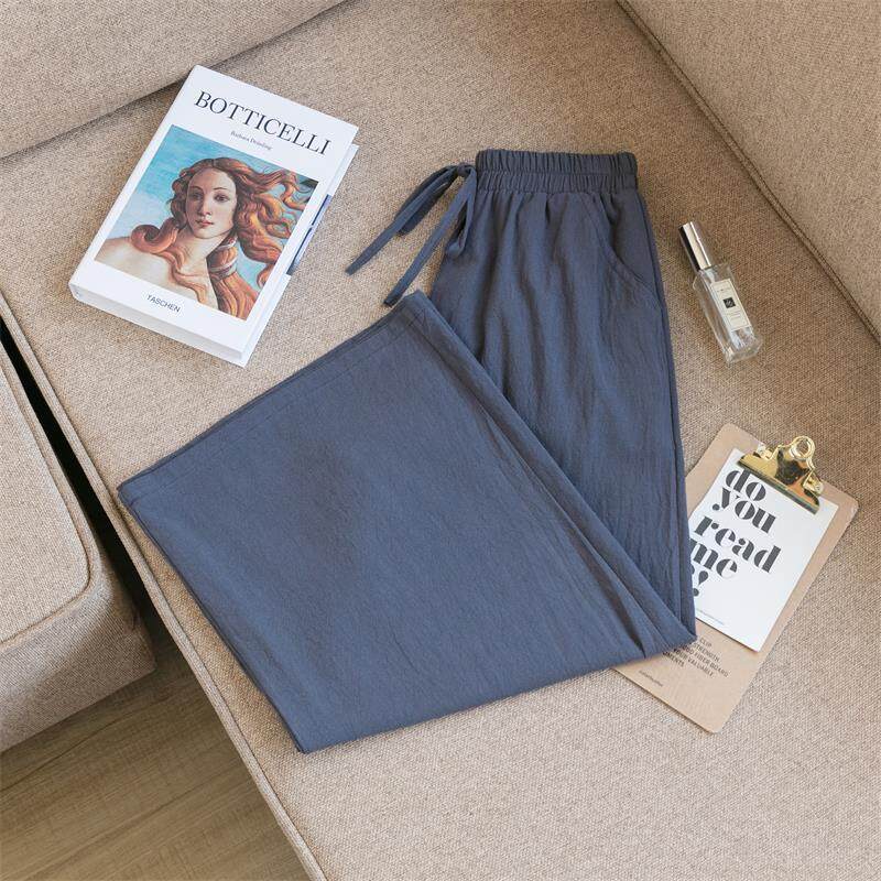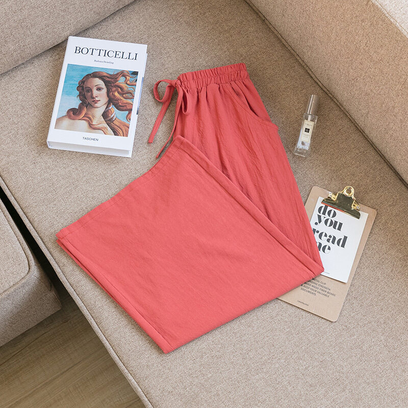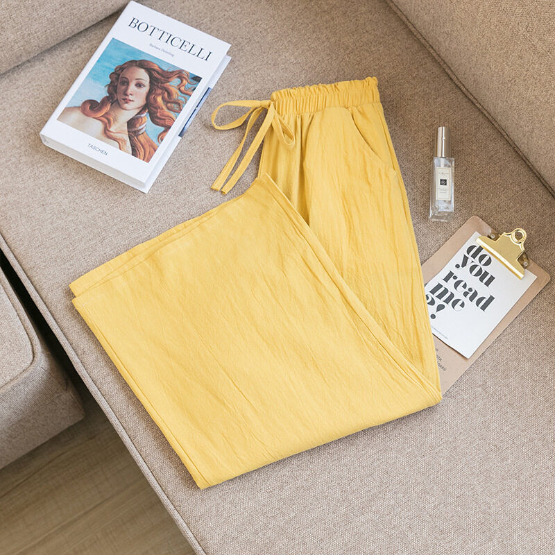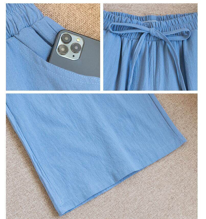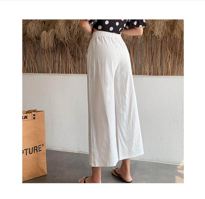 2021 Summer Women Casual Wide-leg Pants Women's Plus Size Loose Cotton Linen Nine-Point Straight Trousers Ladies Home Wear Pants Solid Color Office Work With Pocket Pants Korean