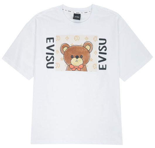 [EVISU KOREA] Overfit Digital Print Teddy Bear Short-sleeve T-shirt Casual Men Women Tee Couple Tops Cotton Street Style Korean Fashion