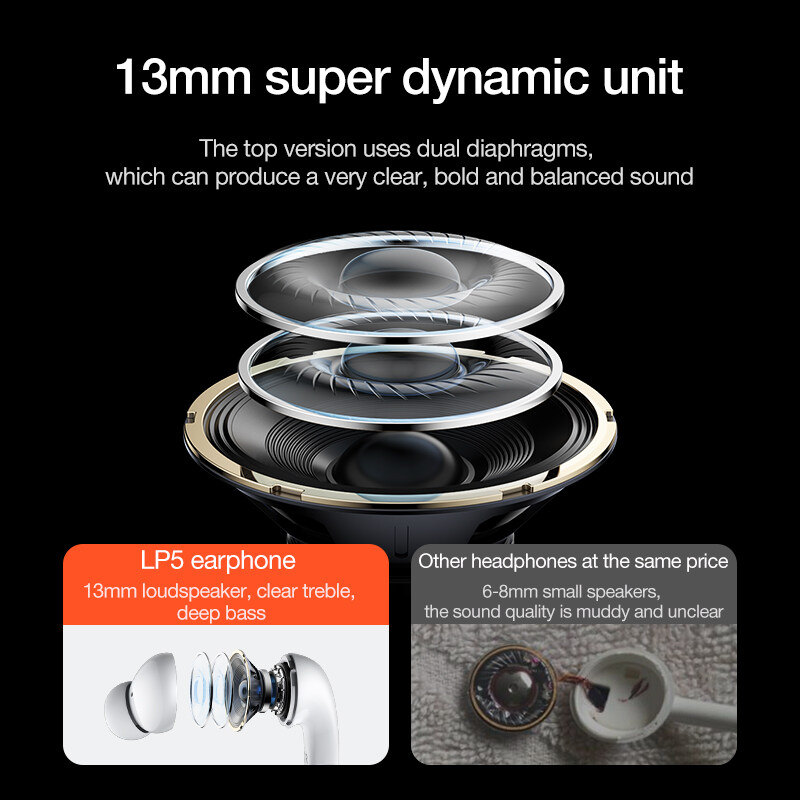 Lenovo LP5 TWS Bluetooth Earphone 9D Stereo Waterproof Wireless Earbuds for iPhone 13 Xiaomi Bluetooth Headphones With Mic