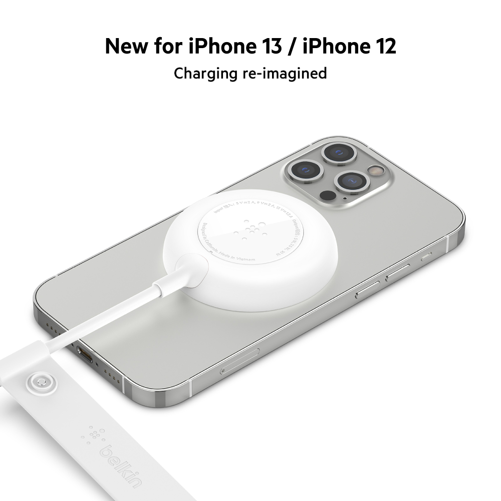 Belkin MagSafe Compatible Magnetic Wireless Charging Pad Fast Charging Compatible with iPhone 14 / 13 / 12 Series 7.5W Cable with 2m Black BOOST↑UP™ WIA005dqBK with Power Adapter
