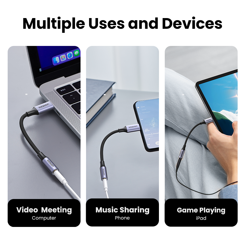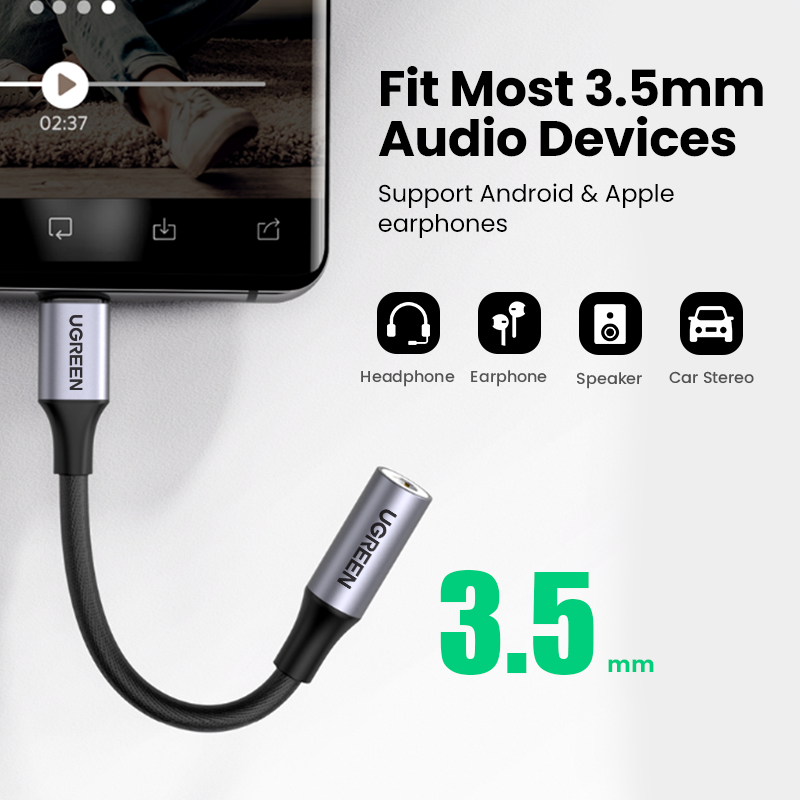 UGREEN USB Type C to 3.5mm Audio Adapter DAC Chip for SAMSUNG S20/S21/S22 Ultra SAMSUNG S10 Oneplue 8 Huawei P40/P50 Surface Pro 7 Macbook Air 2020