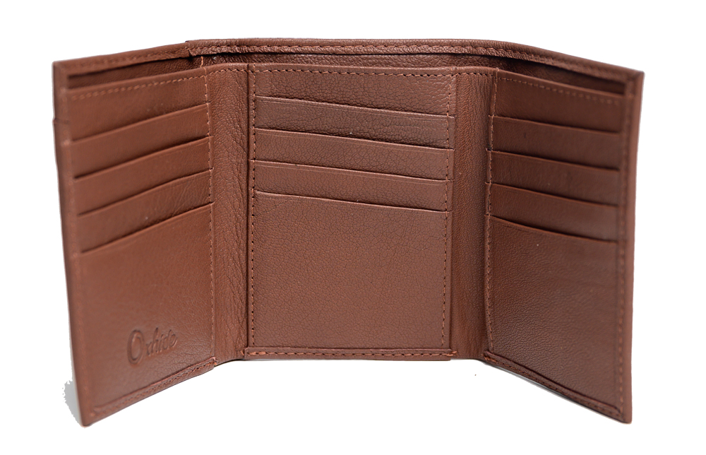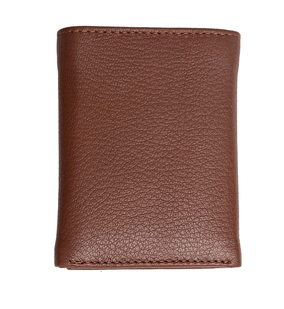 Men's leather trifold wallet in Brown colour. Two cash compartments.