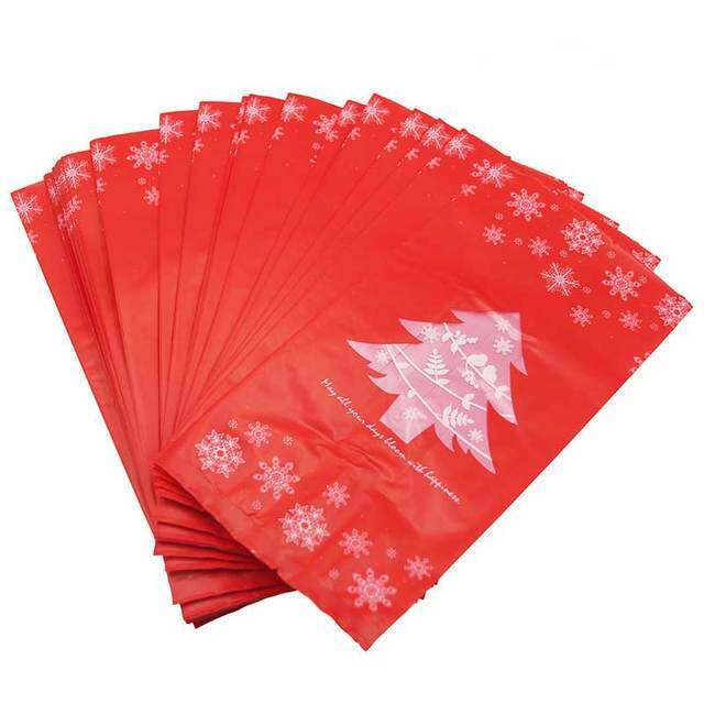 Product:Christmas bag Material: plastic Size:9.5x20x7cm Quantity:25 pieces Color:As picture show Use: Happy new year Christmas tableware decoration Feature: 100% Brand New.