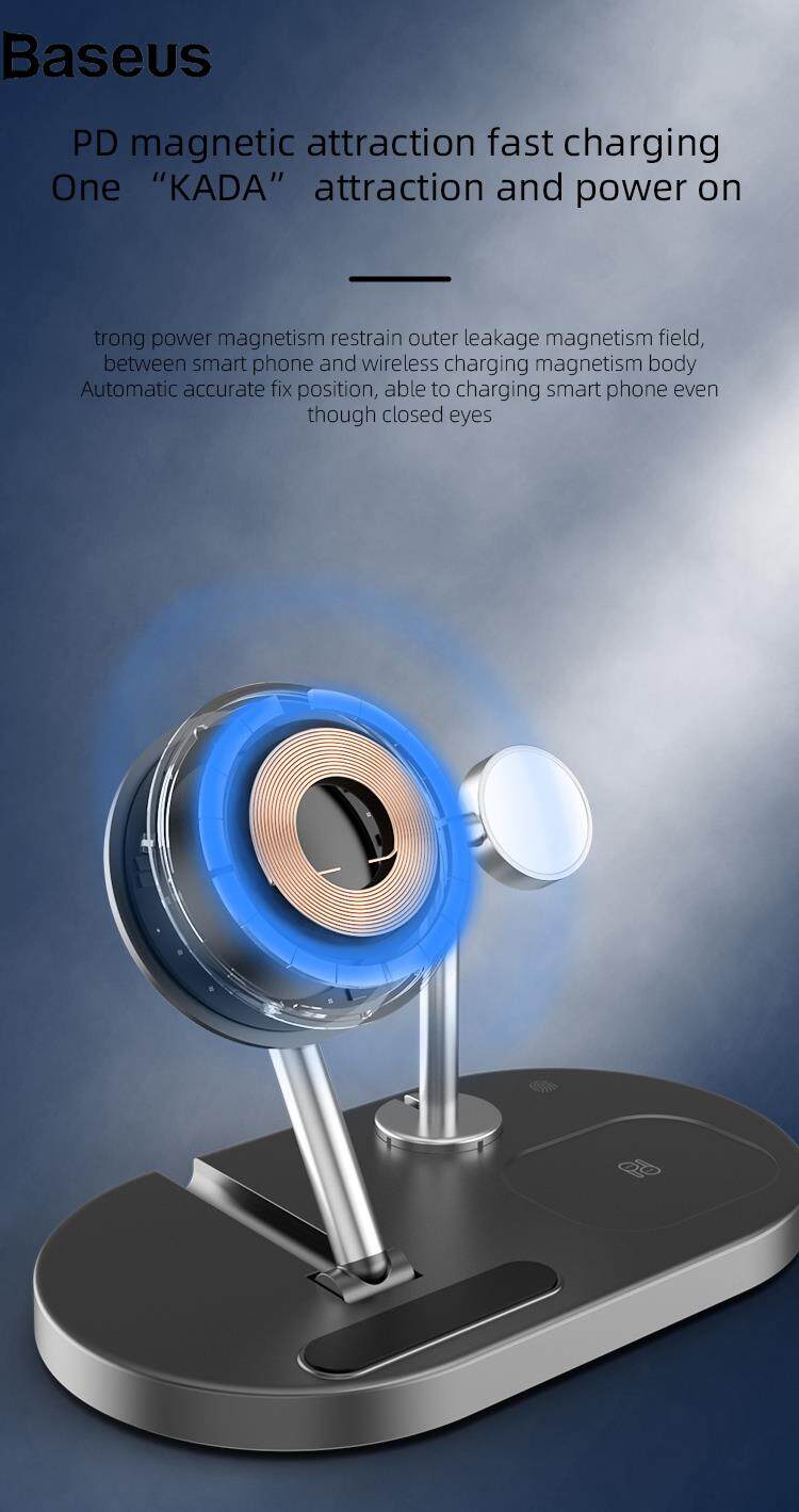 Baseus wireless charger A23 3 in 1 Magnetic Wireless Charger for iPhone Portable Folding Wireless Charging Stand with Small Night Lamp for iPhone 12 13 Series/iWatch/AirPods?24hrs ship out?