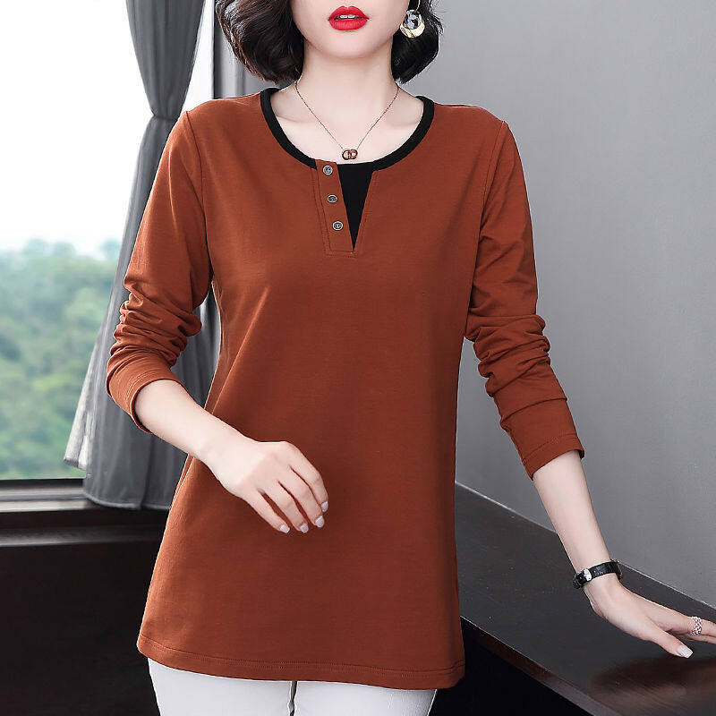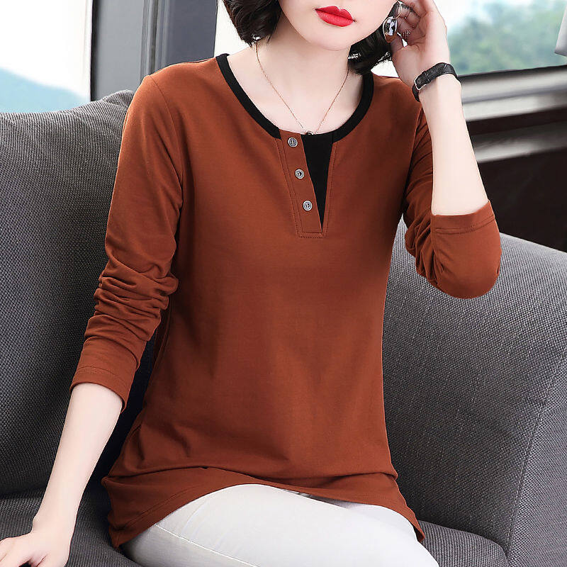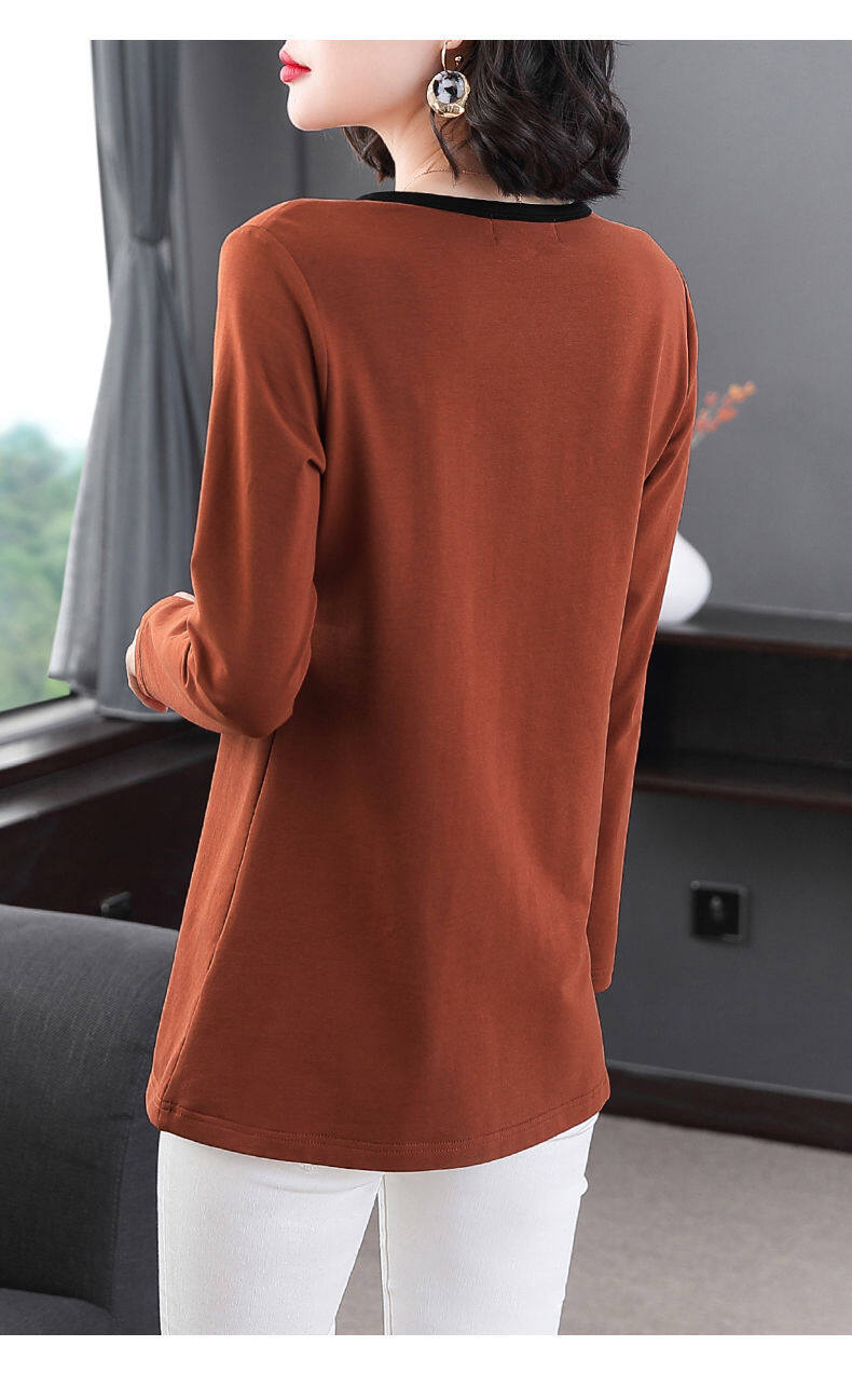 Fashion Long-sleeved Cotton T-shirt For Women's Autumn And Spring Casual Korean Style New Design Bottoming Top Tee