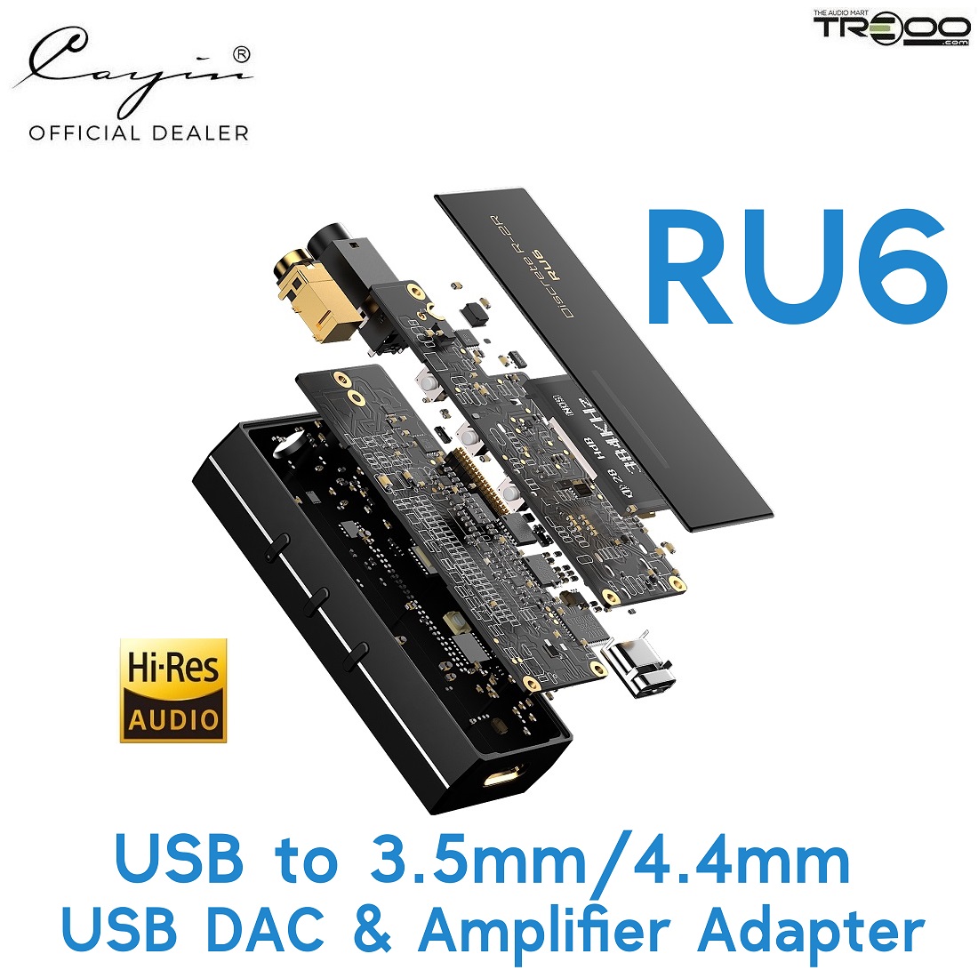 Cayin RU-6 Type-C USB to 3.5mm/4.4mm USB DAC & Amplifier Adapter