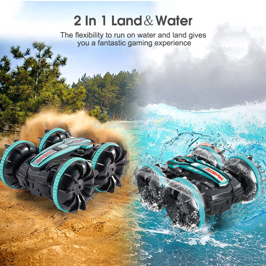 HelloKimi Toy Amphibious Stunt RC Car Remote Control Car 2.4G Water Land 2-in-1 Double Sided Drift Car 360 Degree Rotation Vehicle All Terrain Available Tumbling Driving Children's Electric Toys for C