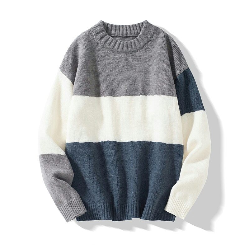 Autumn and Winter Japanese Style Thickened Color Matching Loose round Neck Sweater Men's Korean Style Idle Style Versatile Student Sweater Ins