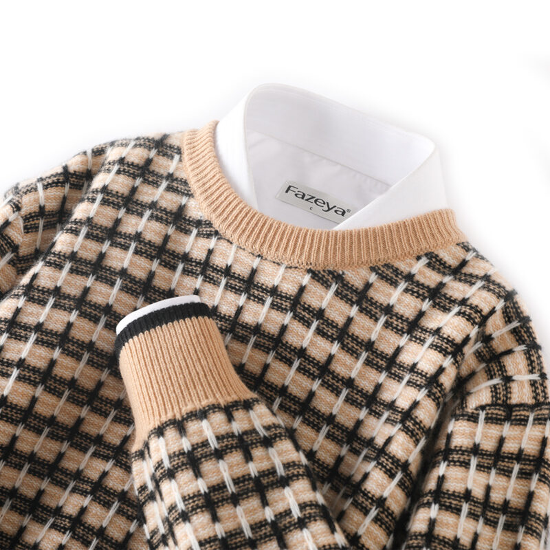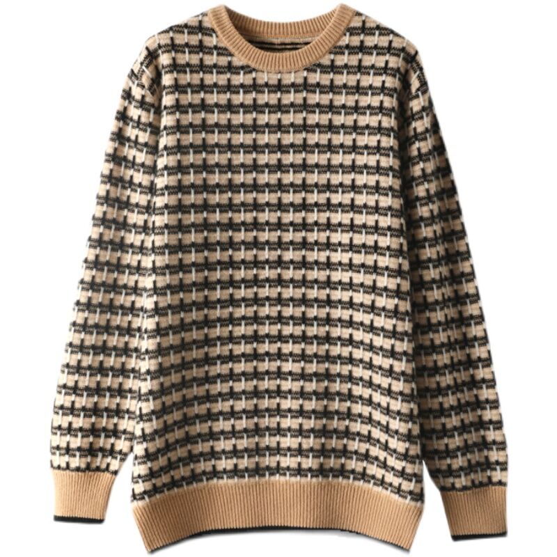 Autumn and Winter New Thickened Cashmere Sweater Men's round Neck Color Matching Pullover Loose Large Size Casual Wool Sweater
