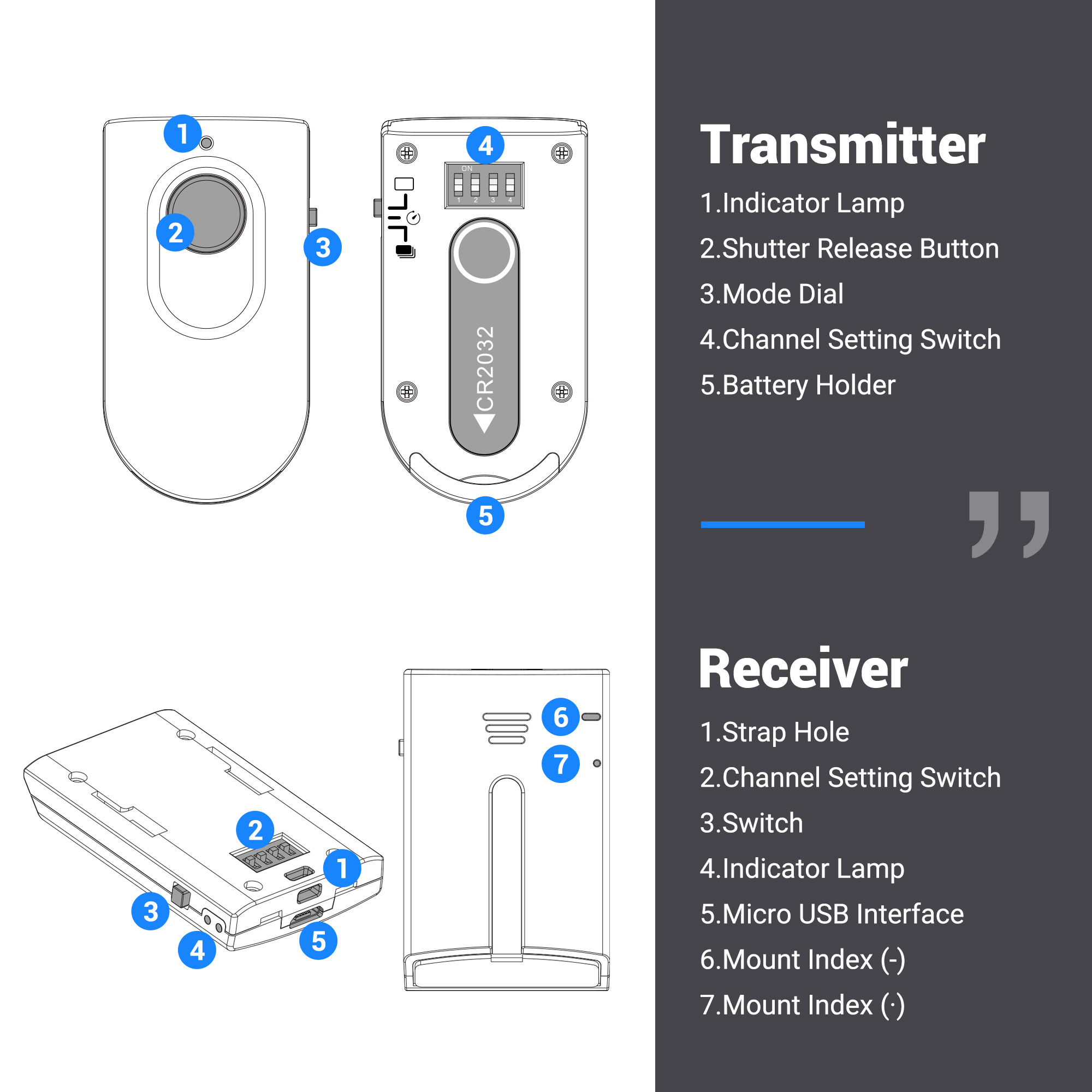 Six shooting modes can be achieved: single shot, 5 seconds delay shot, 3 continuous shots, unlimited continuous shots, bulb shot and video recording*
