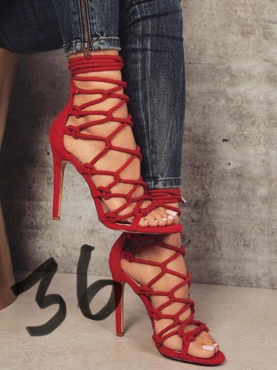 Clearance Sale!!!2022 summer new hollow round toe side empty back zipper ankle strap high stiletto women's large size sandals