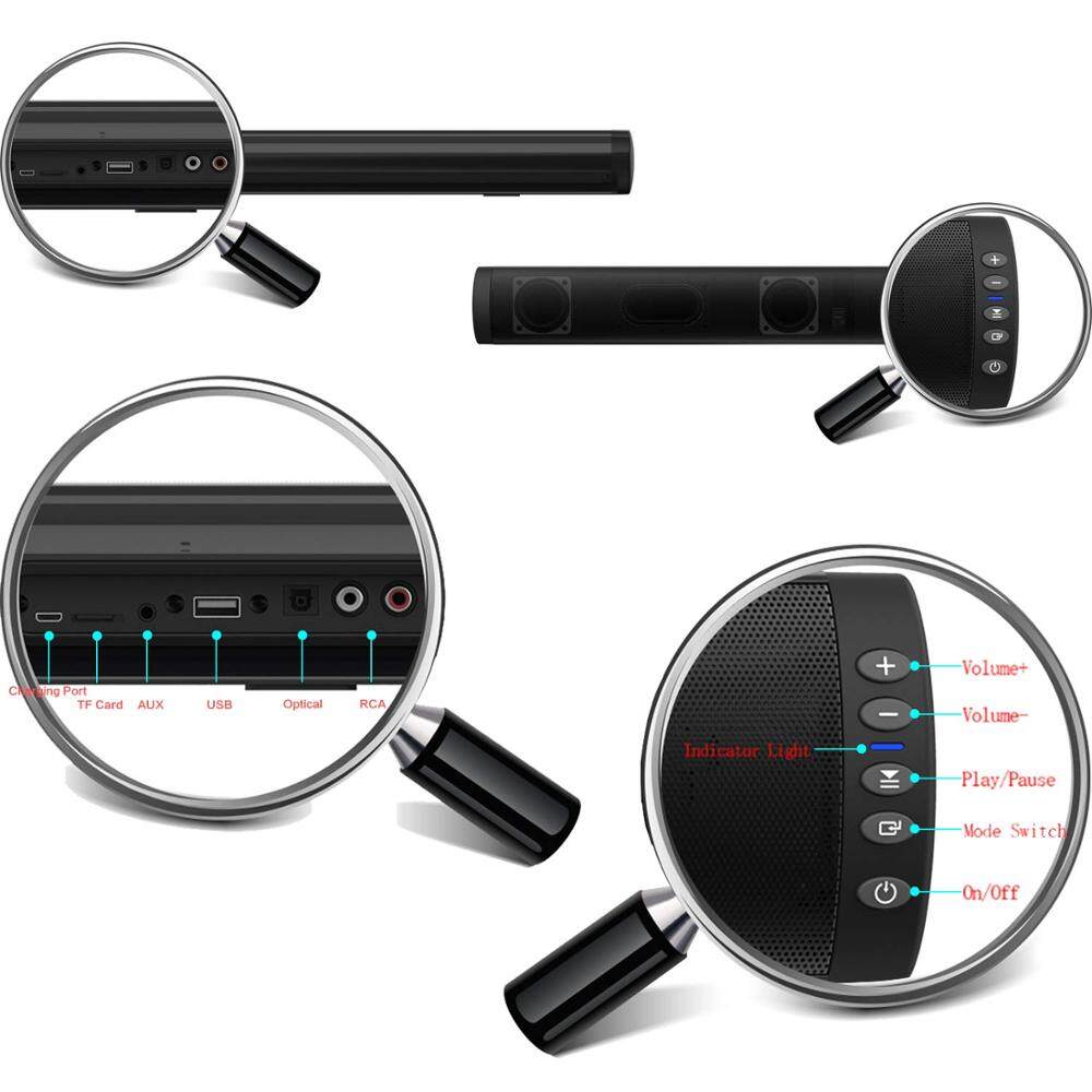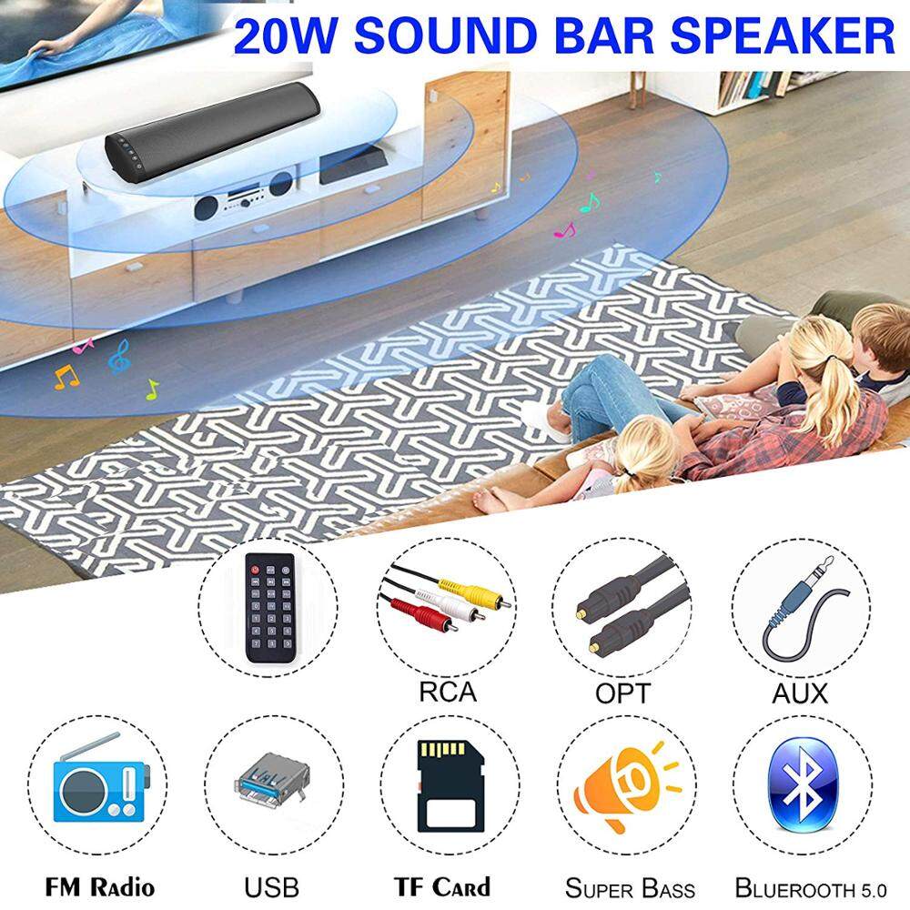 TV Sound Bar Speaker with Wired Digital Optical Audio RCA AUX USB TF Card Input with Remote Bass Stereo Surround Voice