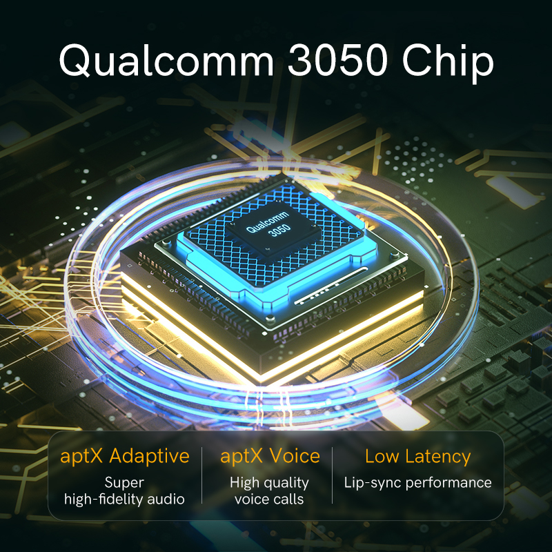 [Bluetooth 5.2 & QualcommQCC3050 Chipset]-The latest Qualcomm QCC3040 chip built-in and Bluetooth 5.2 technology create an all-round upgrade with optimized Bluetooth transmission, flawless connection (75% more stable than the last generation) and enhanced sound to bring you unprecedented experience.