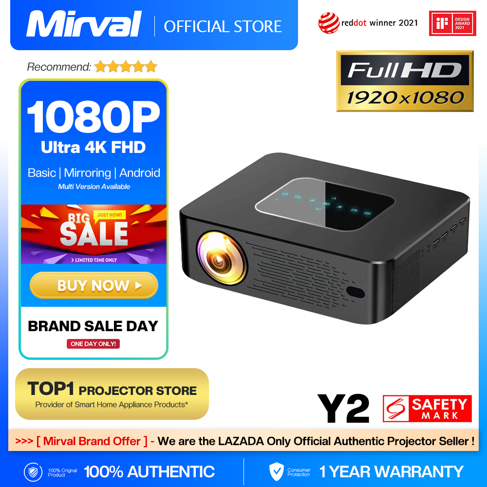 【4K Projector】Mirval Y2 Ultra HD Daytime Full HD 1080P 4K Smart Wifi Android LED Home Theater Projector Office Classroom