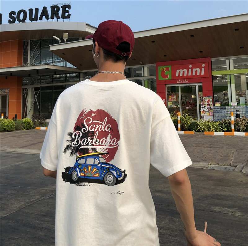 t shirt Men Oversize Korean Street Style Letter Print Casual Fashion Tops