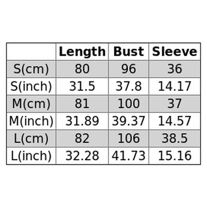 | Length | Bust | Sleeve | |