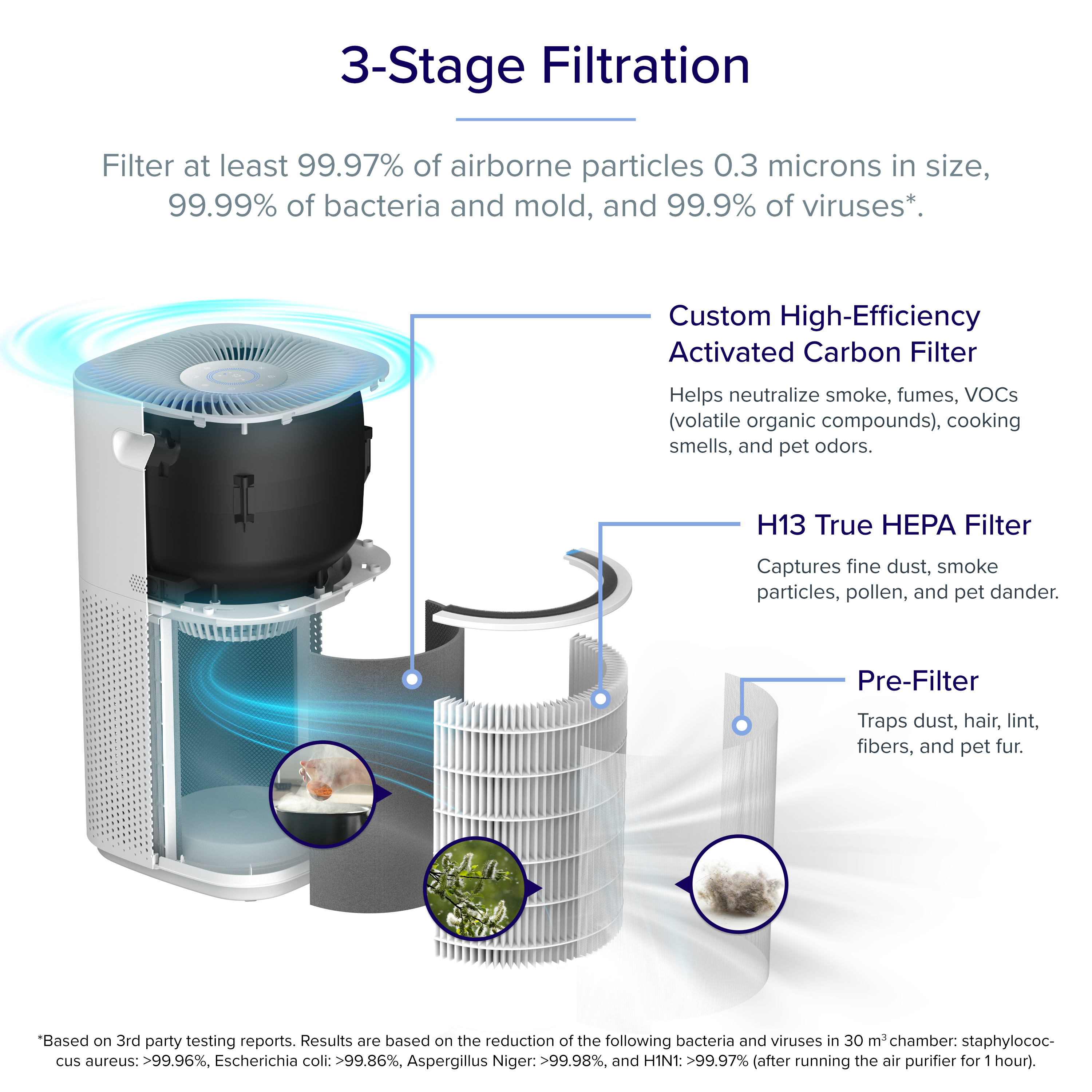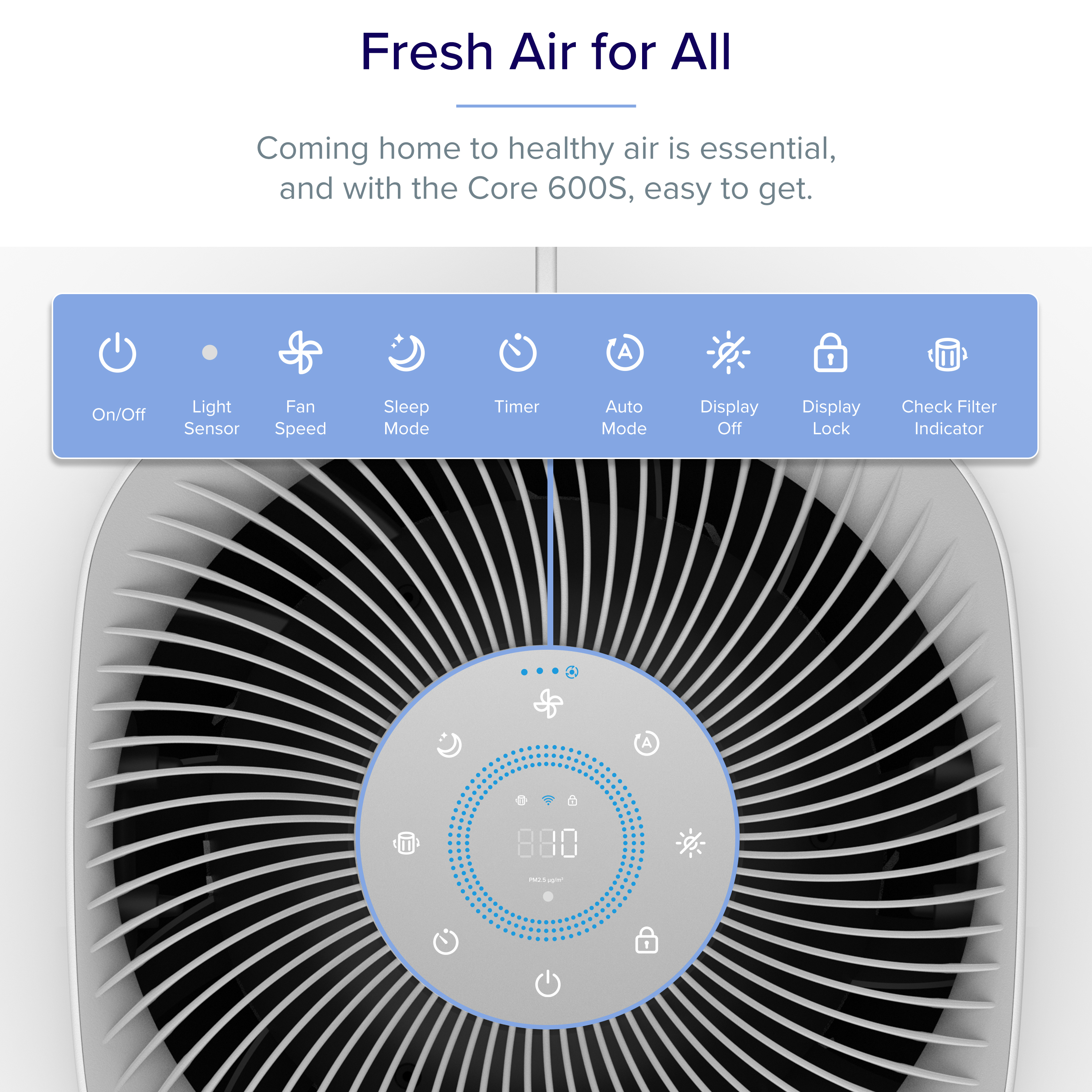Levoit Core600S Smart Air Purifier, covers 147sqm, 3-Stage H13 True HEPA filters 99.97% of airborne particles 0.3microns in size for Allergies, Pets, Smoke, Dust, for extra-large room with Air Quality