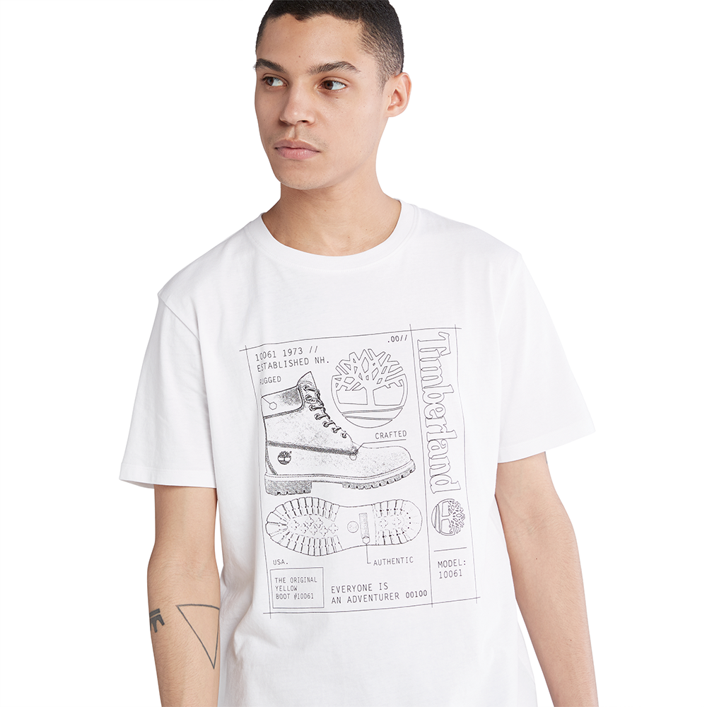Timberland All Gender Blueprint Boot Front-Graphic T-Shirt White