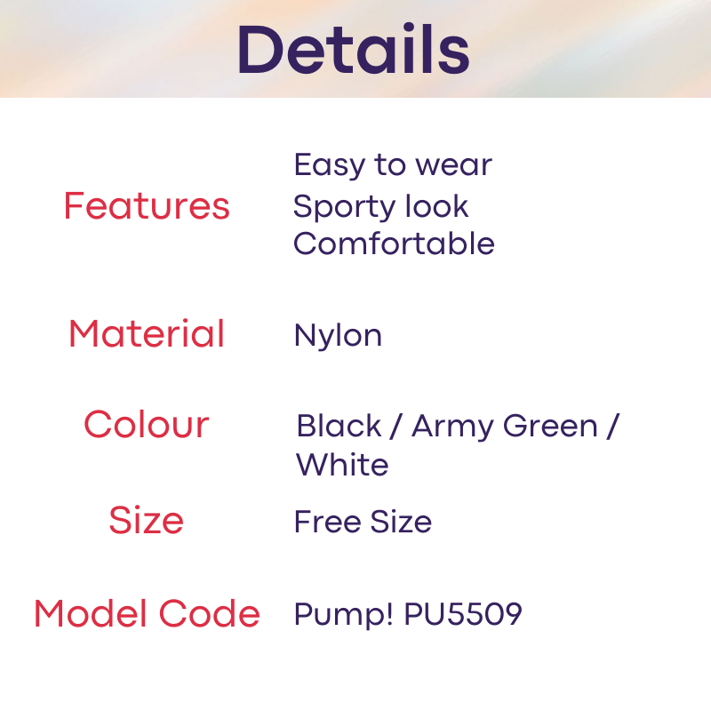 Available in Black/Army Green/White.