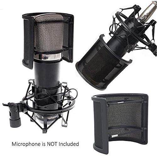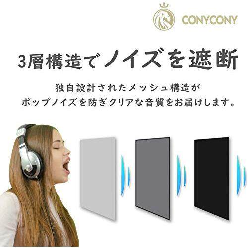 [CONYCONY] Microphone Pop Guard Metal Net Layer Windscreen Noise Prevention Microphone Filter 45mm-63mm Microphone Compatible Elastic Rubber Band Included (Black)