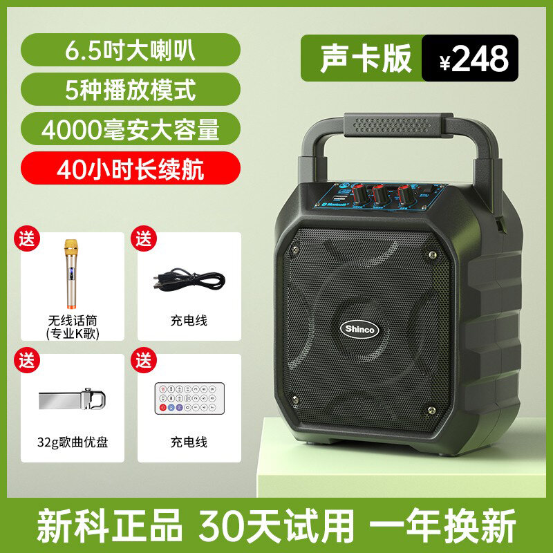 Xinke Outdoor Square Dance Audio Portable Portable High-Power Bass Wireless Bluetooth Speaker Karaoke with Microphone