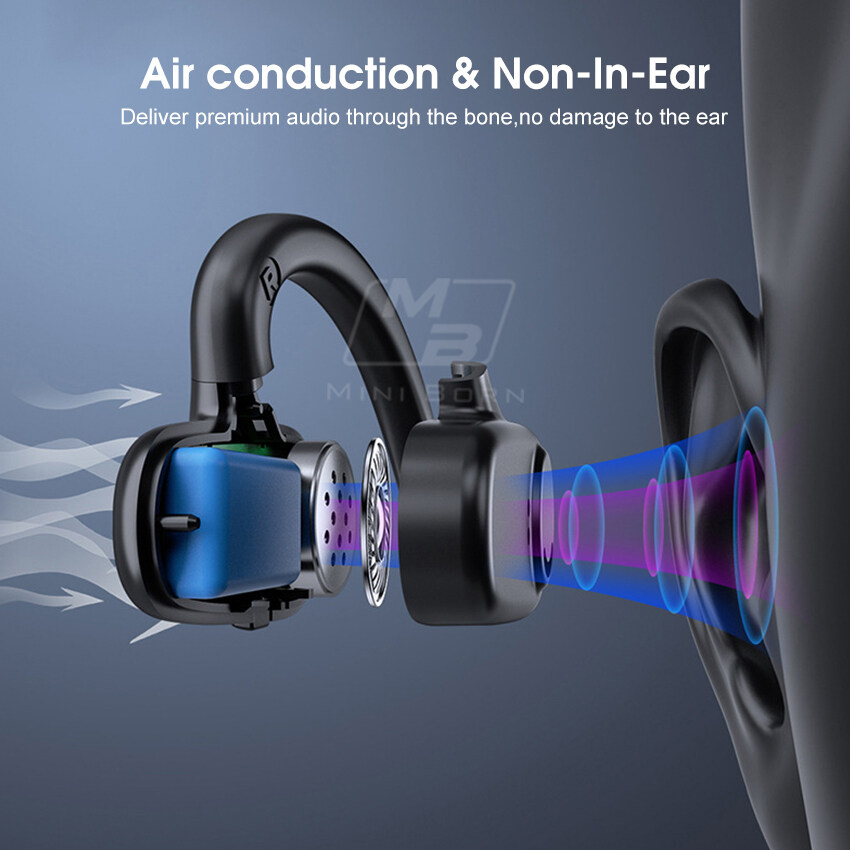 Mini Born Wireless Bluetooth 5.2 Earphone Bone Conduction Headphones TWS Digital Display Bluetooth Headset Non-In-Ear Earbuds Waterproof Earphones for Running Bicycling Hiking Driving Workou