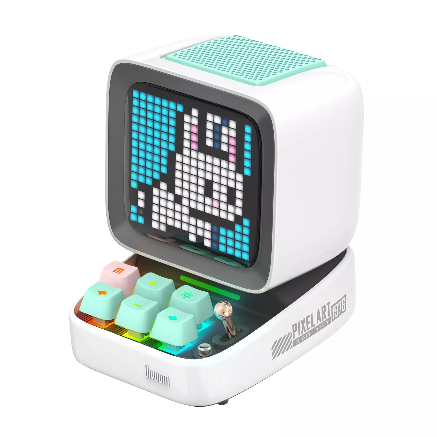 It’s the most visually pleasing, funnest, and feature-packed little speaker you can get. The keys on this model are unique in that it uses backlit mechanical keyswitches on mini keyboard and the bright colors on the 16 x 16 pixel "monitor" which adds to the theme of a small retro computer.