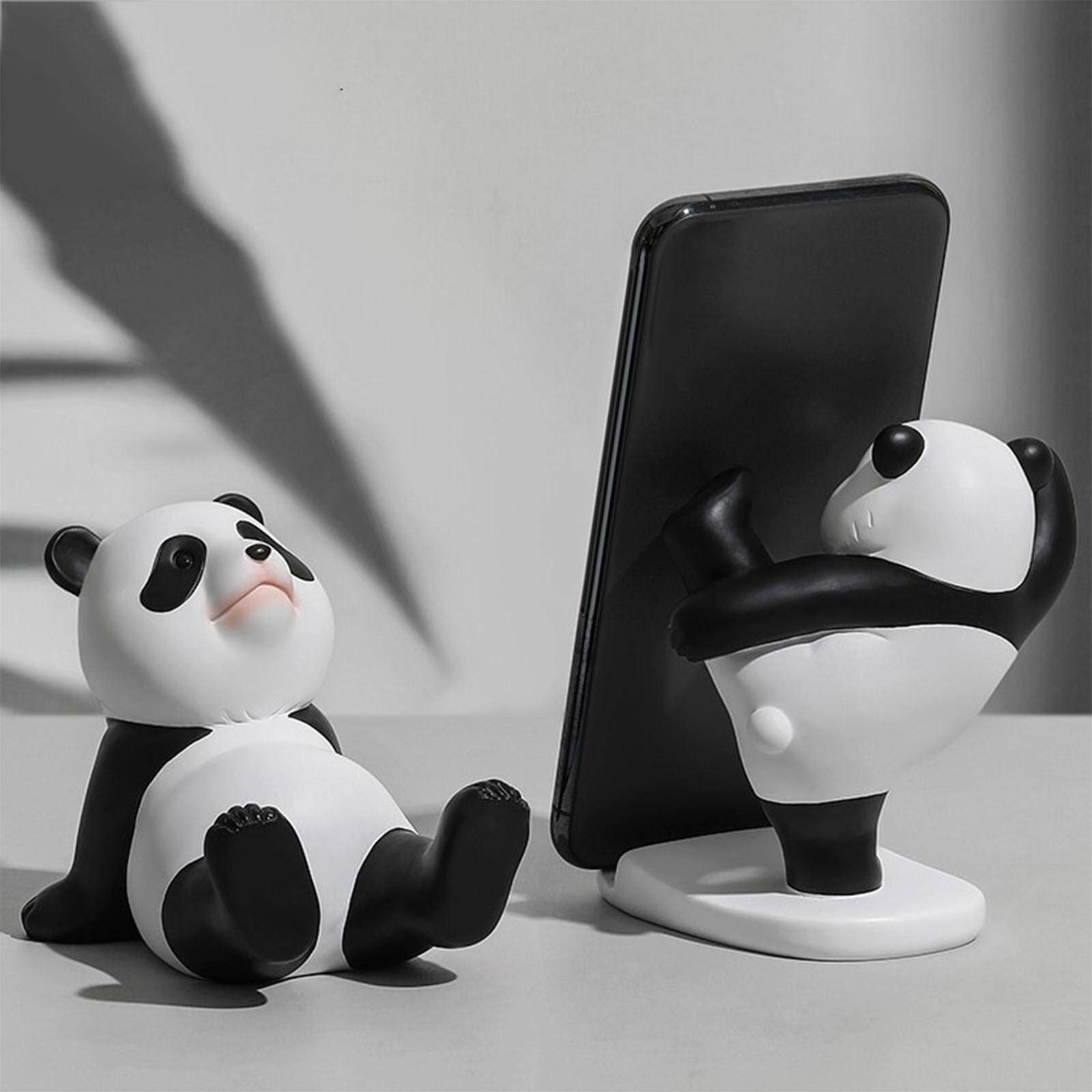 milageto Lovely Panda Statue Desktop Phone Holder Resin for Office Tabletop Home