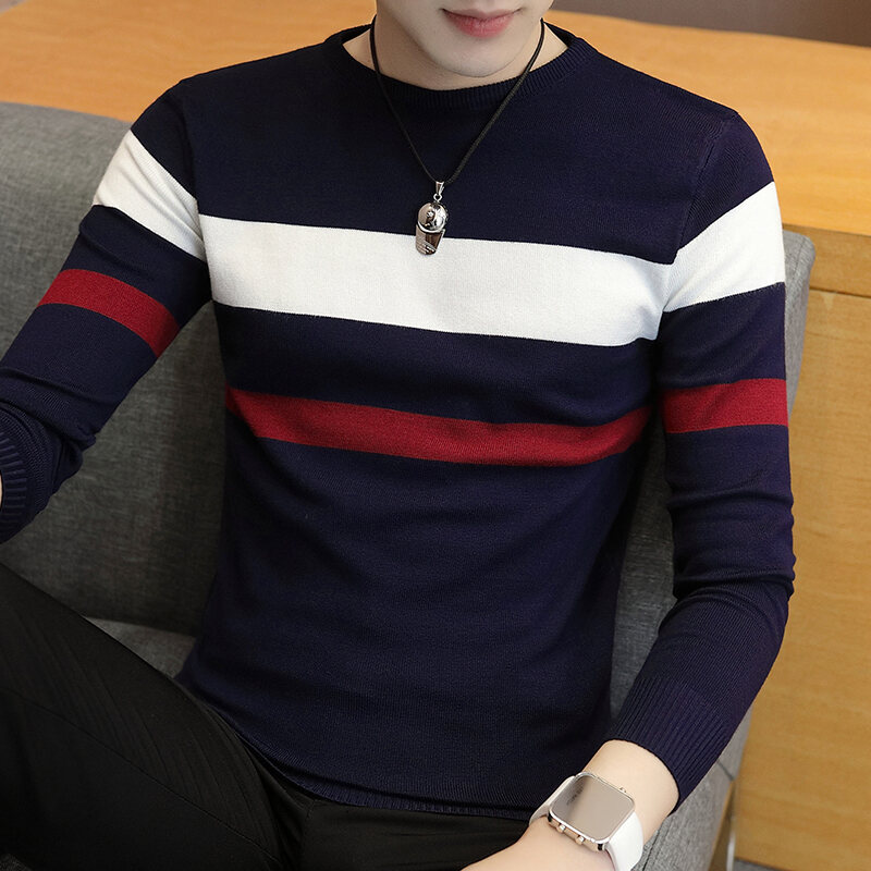 LUX ANGNER Autumn Winter Men's Pure Cotton Sweater Man Long Sleeve Solid Slim Fit Pullovers Sweaters For Men Casual Warm Jersey Knitted Pullover Korean Style Brand Clothes
