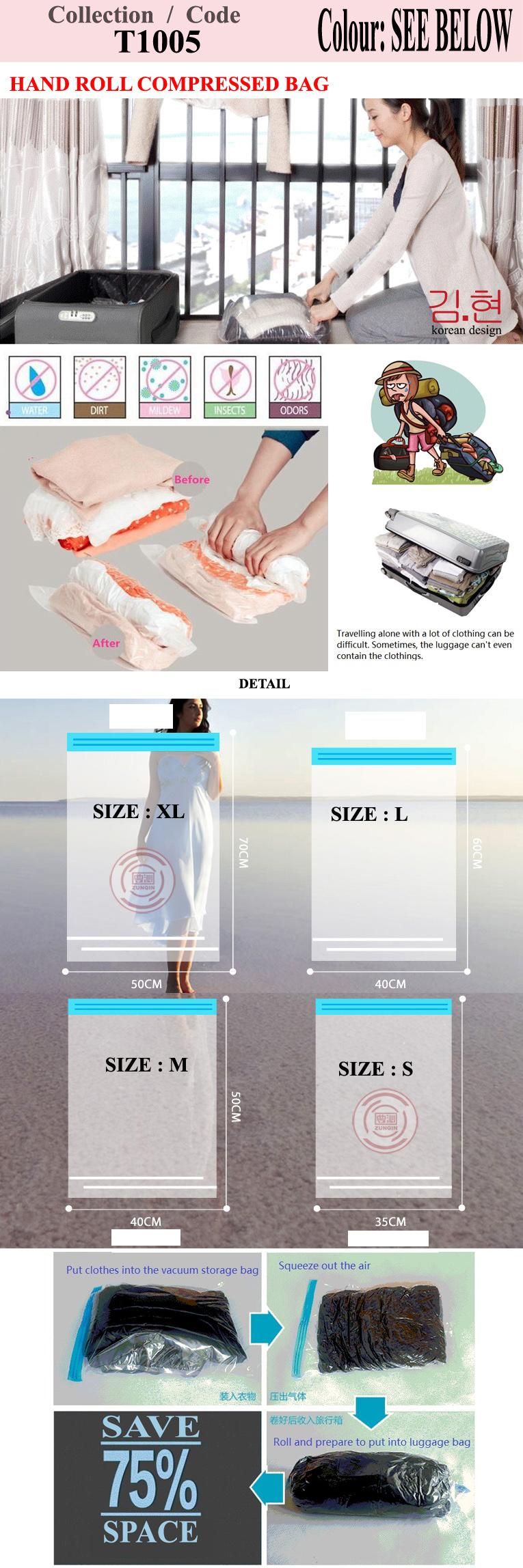 [SG Local Seller] ( 8 PCS ) OF Hand roll seal bag/Vacuum Storage / Clothes ★Easily without vacuum!★Just Roll it by Hand!/ Travel [ By Kim Hyeon ]