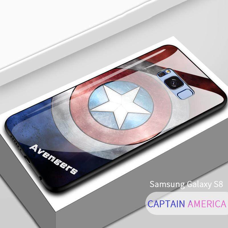 Marvel Avengers Superhero Ironman Spiderman Shockproof Phone Case Back Glass Cover For Samsung Galaxy S8 S8 + Plus Phone case TPU Protective Casing cover