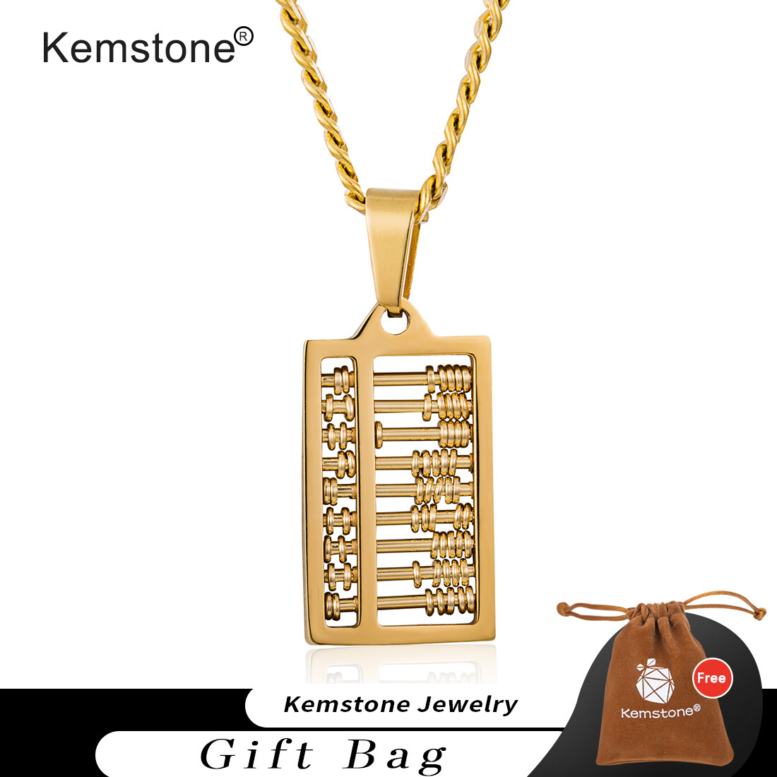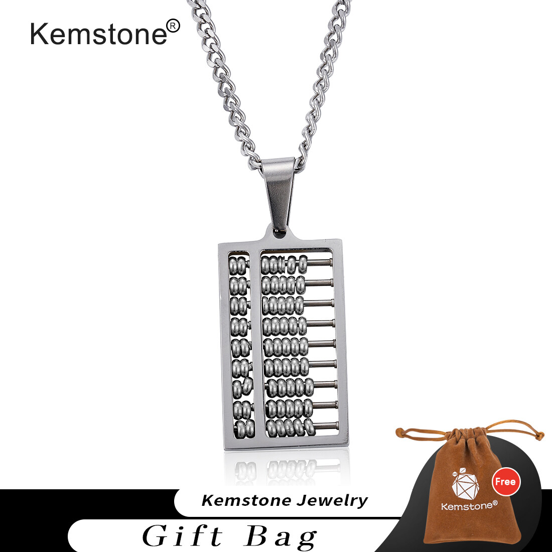Kemstone Fashion Titanium Steel Abacus Creative Design Pendant Necklace for Women Men Jewelry Gifts