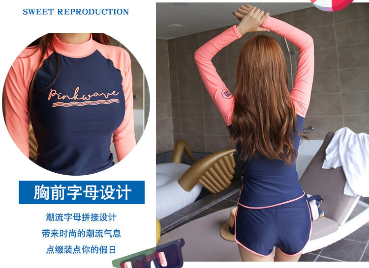 G-gourd Women Rashguards Long Sleeves Tops Shorts Set Swimming Suit for Lady Rash Guard Surf Diving Swimwear Water Sports - intl