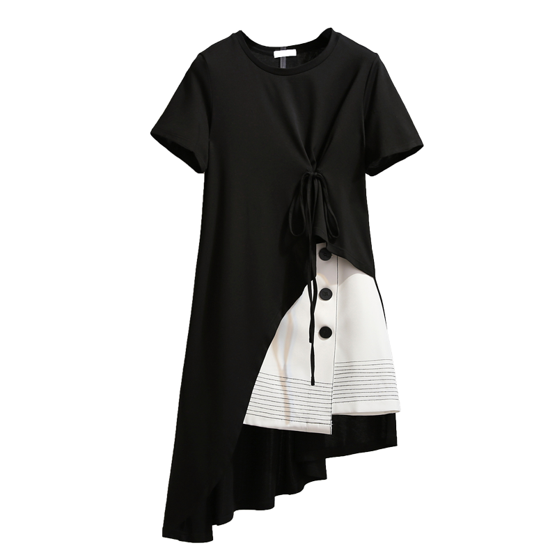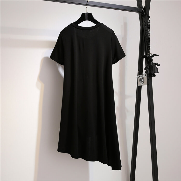 Good Goods Discount Store Shopping Mall Withdraw Cabinet Large Size Women's Summer Dress Thick Waist Belly Covering Women's Fat Hiding Dress Western Style Short Dress