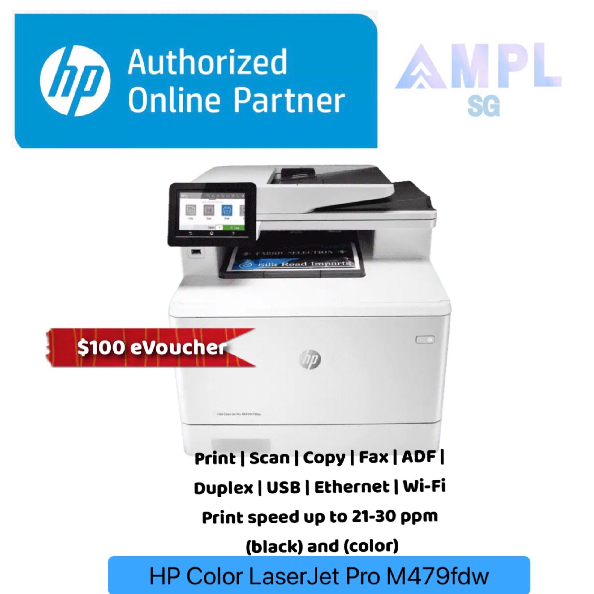 HP M479fdw Color LaserJet Pro Print/Copy/Scan/Fax/Email/Wireless/Automatic Duplex Printing/Single pass duplex scan(Free $100 eVoucher) Orderable for HP 416A Black 416X Black,Cyan,Magenta,Yellow m479 4