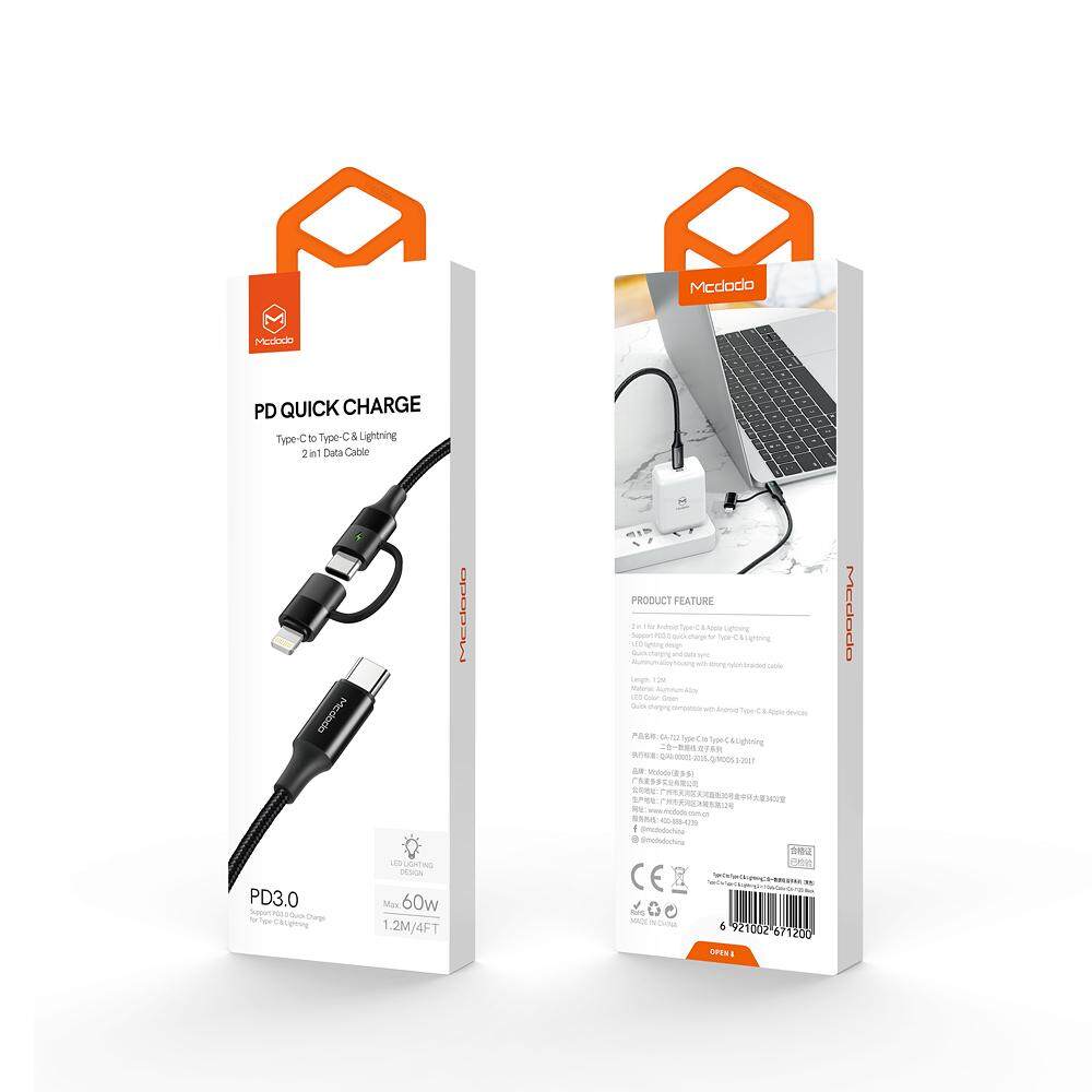 Mcdodo USB C Cable TO Type-C +iPhone lightning Cable 2 in 1 PD 60W For iphone 11 12 13 pro max iPhone X 8 Plus XR XS MAX Fast Charging Cable For Samsung huawei Mate 20 Pro P30 Pro Xiaomi Charger D