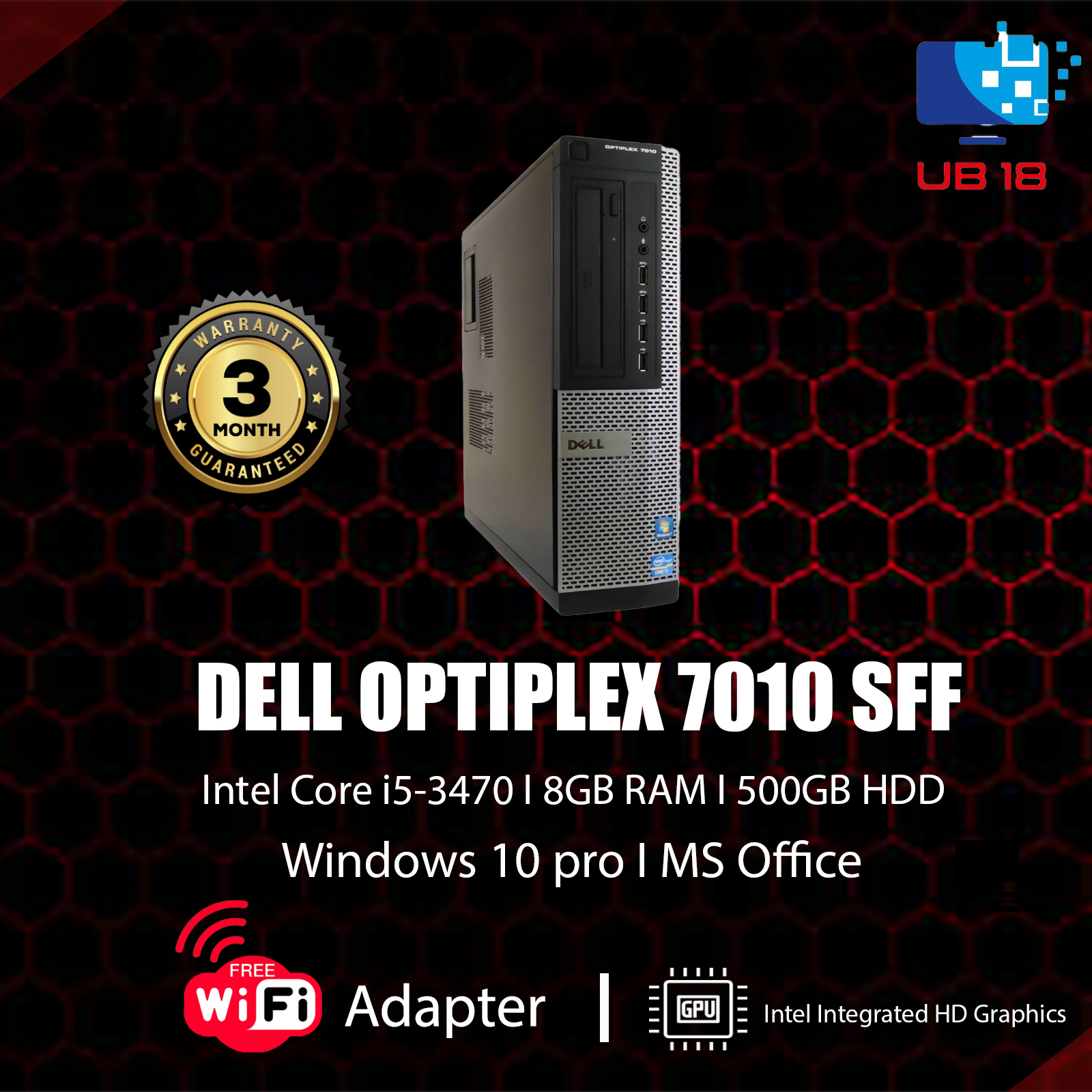 Dell Optiplex 7010 , core i5 , 8GB Ram , 500GB Hard drive, windows 10 and ms Office 365, (free wifi adaptor)