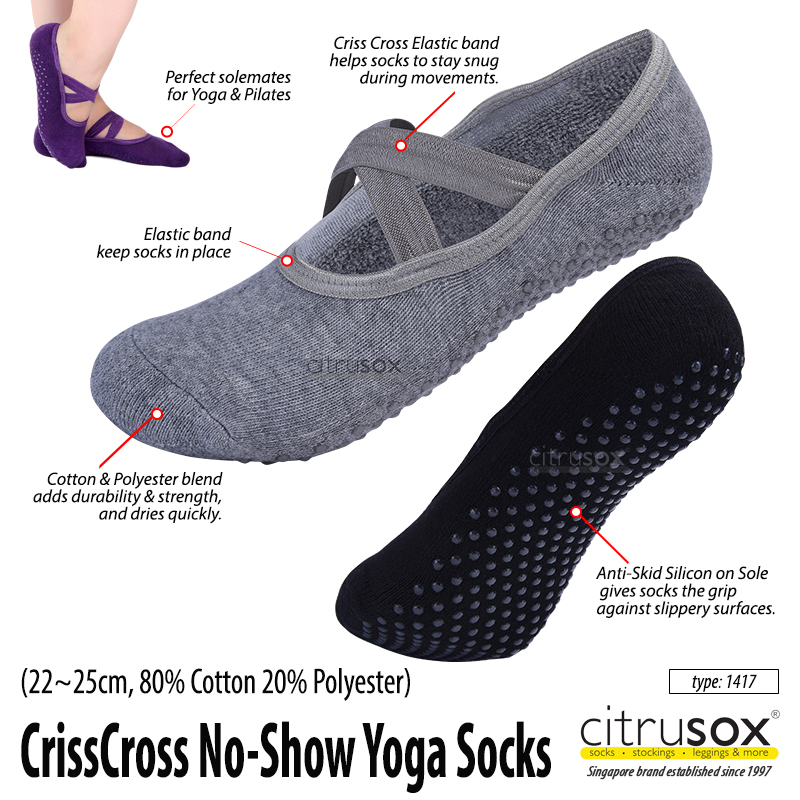CITRUSOX [3 Pairs] Anti-Skid Nonslip Yoga / Pilates No-Show Flexible Socks (22-25 cm) #1417