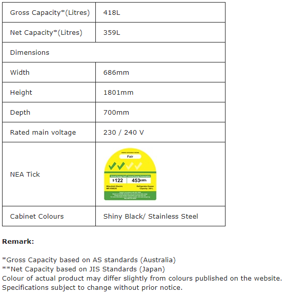 MITSUBISHI MR-V50E2G 358L STAINLESS STEEL 3 DOOR TOP FREEZER REFRIGERATOR