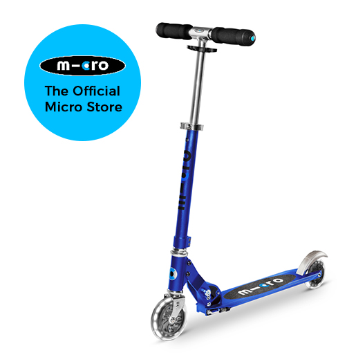 The Micro Sprite can fold up and is easy to carry. This versatile aluminium scooter has been a popular companion for years amongst kids going to school and also commuters. This series now has LED wheels at the front and rear giving this classic Micro Scooter that extra something.