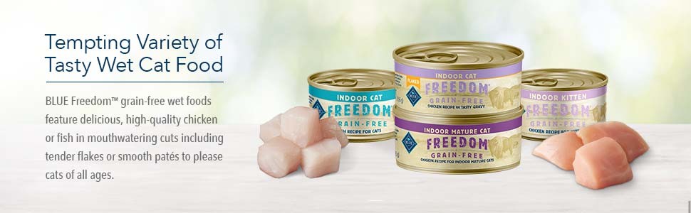 • Contains twenty four (24) 5.5-oz cans of BLUE Freedom Grain Free Natural Adult Pate Wet Cat Food, Indoor Fish